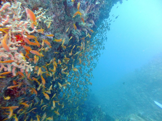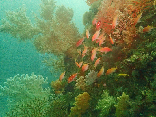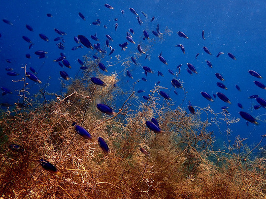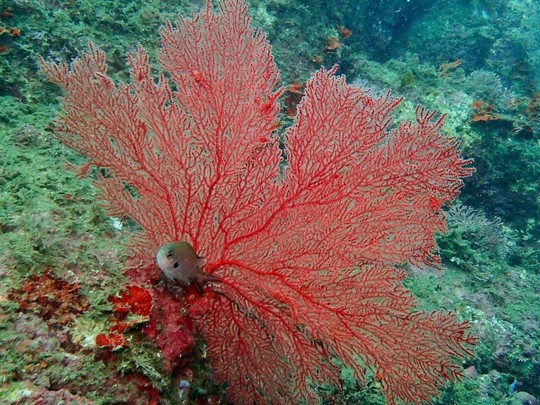 ウミウチワとスズメダイ