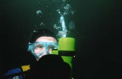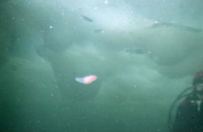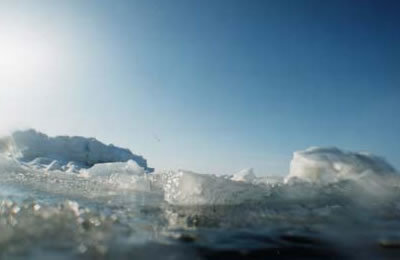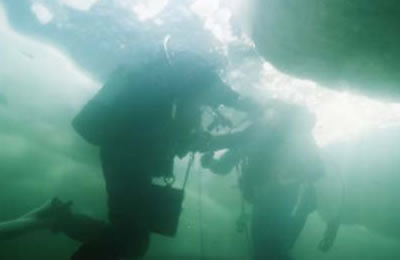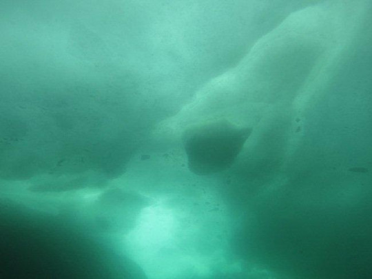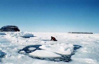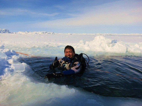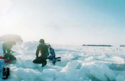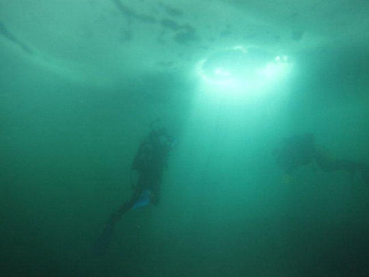 流氷に穴をあけてエントリー&エキジットします。光が差し込んで美しいです。