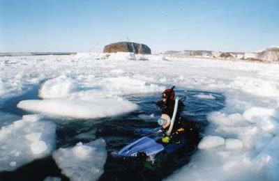 流氷ダイビングは、ドライスーツでダイビングできます。